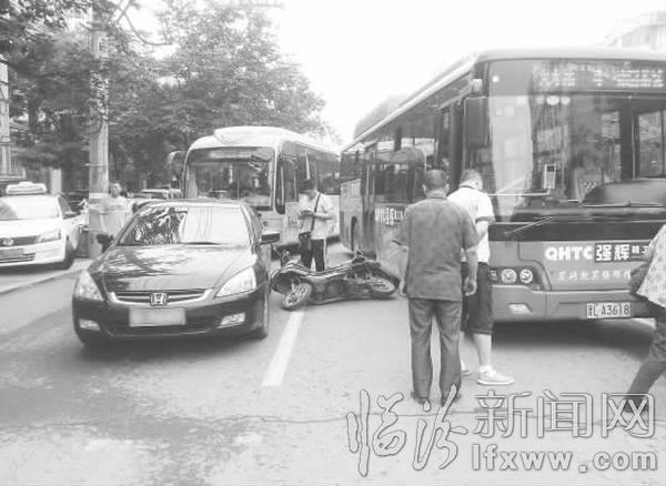 临汾新闻网讯 6月29日10时许,我市平阳北街邮政局附近,一辆电动车同黑色轿车发生刮蹭,导致平阳北街由北向南车流排起长队。与此同时,在该路段铁路医院门口,一辆面包车同一辆越野车发生刮蹭,也导致该路段交通不畅。市交警支队北城大队二中队民警赶赴现场处理事故疏导交通。11时,该路段恢复通行。 记者 张蕴强 摄影报道