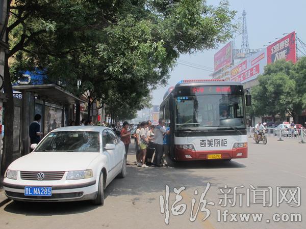 平阳广场,一私家车停放在公交站前,公交车无法靠站停放