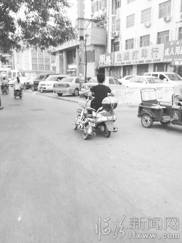 临汾新闻网讯 7月13日,记者途经鼓楼南大街与贡院街交汇处时看到,一市民不仅自己骑着一辆电动摩托车,而且另一只手还拖着一辆电动自行车,时快时慢地艰难前行,看着十分危险。