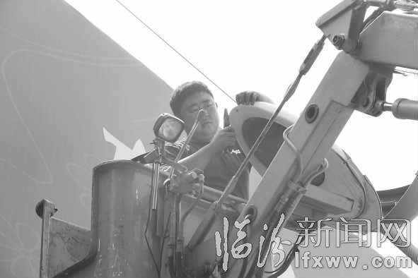 临汾新闻网讯 7月20日,市路灯管理所的工作人员对路灯进行节能改造。