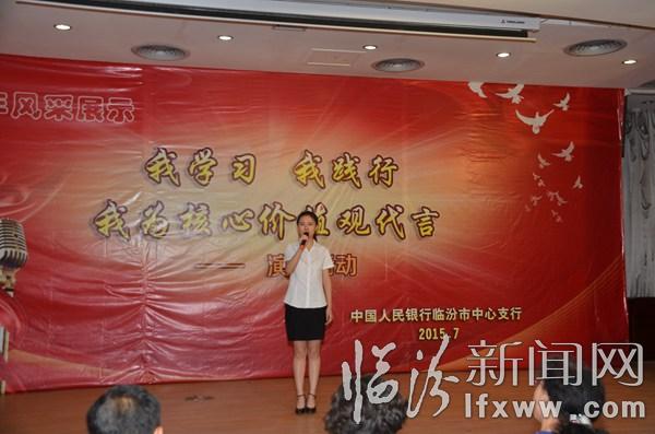 临汾新闻网讯 在流火的七月,人行临汾中支成功举办了“我为核心价值观代言”主题演讲活动。人民银行四楼多功能会议厅,虽然室内的温度如同台上选手激情四溢的表演一样炙热,但一个个真诚友爱的故事,一段段触动心灵的陈述,一篇篇饱含正能量的文字,像一股清凉的甘泉滋润着心田,打动着台下的每一位观众……