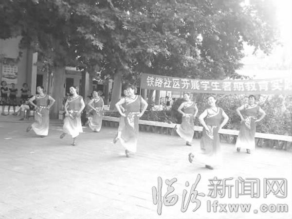 近日,在尧都区车站街办事处铁路社区举办的学生暑期教育实践活动中,社区居民们自编自演的舞蹈《竹林深处》、《献给妈妈的歌》、笛子演奏《美丽的神话》、双簧《文明礼仪之歌》等精彩节目,为这个暑假增添了一抹色彩。