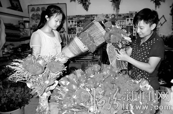 临汾新闻网讯 8月18日,在市区一家花店,工作人员在为顾客制作情人节花束。随着传统节日“七夕”的到来,市区的鲜花店鲜花热销,有别于往年的是许多花店网上预订业务增加,简约、时尚、平价的花束成为顾客首选。 记者 闫锐鹏 摄