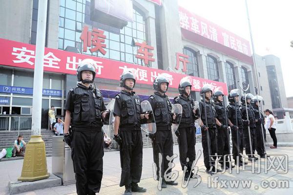 图为民警正在辖区火车站执勤。