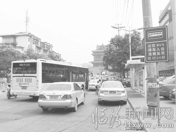 临汾新闻网讯 近日,记者在市区鼓楼南大街看到,3辆私家车占据了一公交站台,致使公交车无法在站内停靠,市民上下车时存在安全隐患。