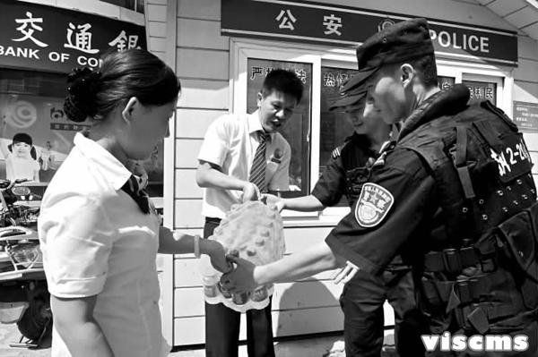 临汾新闻网讯 日前,交通银行临汾分行的青年志愿者将矿泉水送给正在执勤的民警。该行志愿者服务队成立以来,坚持为城市安全执勤的公安民警开展爱心服务,定期为他们送去了矿泉水、毛巾以及消暑用品,感谢他们为城市安全作出的辛勤努力。记者 闫锐鹏摄