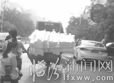 临汾新闻网讯 9月20日,在贡院街上,一辆超宽载货的电动车“颤颤悠悠”地在道路上行驶,这样载货不但自身安全没有保障,还严重影响其他行人通行。