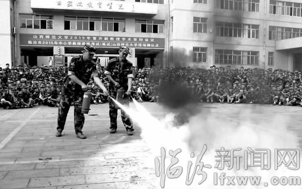临汾新闻网讯 日前,临汾市消防支队与山西师范大学在该校联合举办了新生消防应急知识和应急疏散演练活动,旨在通过此次活动,提高大学生安全防范意识和自救能力。 记者 孙国芳 摄