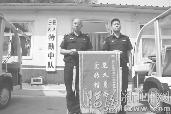 见义勇为,谱写赞歌。26日上午,获救女子家属将一面写着“见义勇为爱的楷模”的锦旗送到了汾河景区执法巡逻大队。刘凤阳说,类似这样的施救跳水者的事件,在汾河景区执法巡逻大队也不是头一回了。作为一群训练有素、纪律严明的“坚强卫士”,每个队员都将自己的全部热情投入到工作中,力保汾河景区的安全与和谐。同时,也呼吁广大群众,珍惜生命,不要让一时冲动成为终生的遗憾。(赵文家 成华)