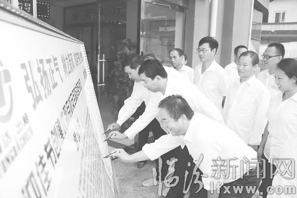 临汾新闻网讯 中秋、国庆两节到来之际,22日,临汾市通达出租有限公司在公司大院内启动迎佳节、创建优服月,及抓安全奋战百日活动。该公司提倡遵守交通法规文明行车,增强驾驶员的文明服务意识;在日常经营中以爱心、真心、诚心来对待乘客,提高行业服务质量,百余名出租车驾驶员在倡议书上签字。 记者 张森辉 摄