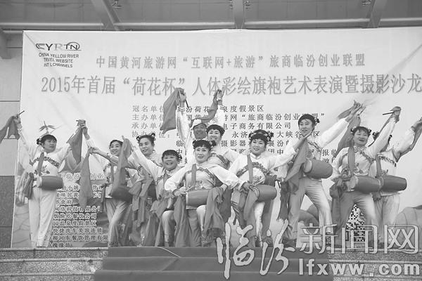 临汾新闻网讯 国庆期间,由中国黄河旅游网主办的2015年“荷花杯”旗袍艺术表演暨摄影沙龙活动在襄汾荷花温泉度假景区启动,仅开幕当天,民间艺术、腰鼓等精彩表演吸引了河南、运城、临汾等地游客达上千人。 此次活动旨在吸引全国各地游客来襄汾“赏荷花、泡温泉”,让襄汾莲菜走向品牌化,销售到全国。 记者 卢凯 摄