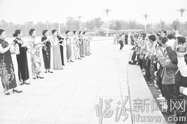 临汾新闻网讯 10月19日,2015华文教育华夏行走进临汾,来自全球18个国家的近百名华文教育工作者来到汾河公园参观,感受尧都深厚的历史文化。我市旗袍协会的会员们奉献了一场精彩的旗袍表演,让华文教育工作者大为赞叹。 记者 张莹超摄