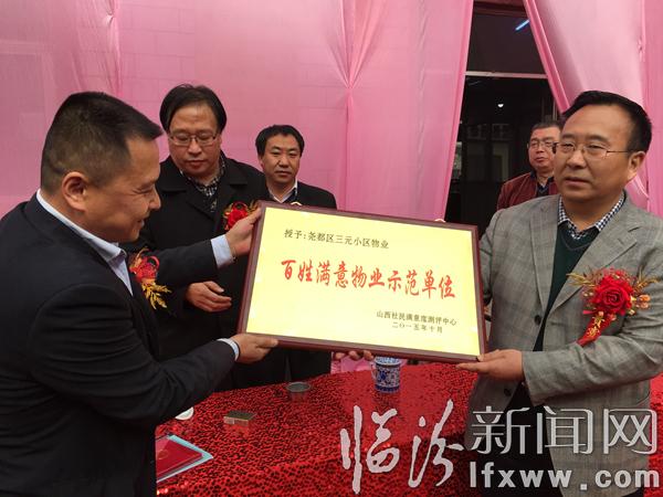 临汾新闻网讯 10月31日,由山西社民满意度测评中心评选,临汾三元小区荣获全省百姓满意物业示范单位,并举行授牌仪式。