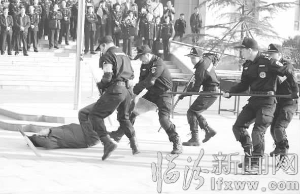 临汾新闻网讯(记者 赵文家 李静)盾牌攻防、枪支分解结合、反暴恐实战演练……11月3日,临汾市公安机关警务实战化训练现场推进会在襄汾县公安局召开,会议回顾总结了今年以来全市公安机关开展的“警务实战推动年活动”情况,并通过实战演练,展示警务人员的综合素质,交流和推广部分县(市、区)警务实战训练的先进经验和做法。
