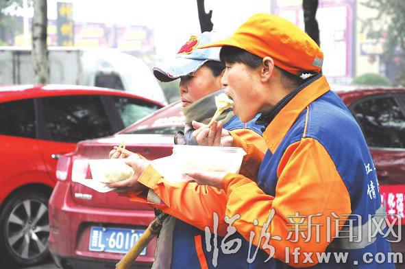 “真的太感谢他们了,这热热的饺子真好吃,比家里的都好吃!”在鼓楼南大街的环卫站点处,环卫工人魏云婷笑着对记者说道。