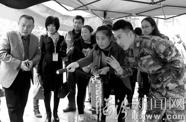 临汾新闻网讯 11月5日,尧都区“119”消防安全宣传月活动启动仪式在玉祥驾驭昂休闲广场举行,200余人参加了启动仪式。现场消防官兵和市蓝天救援队队员为市民们展示了各种消防器具和救援工具,并现场为市民演示如何使用消防器材。图为工作人员用消防模拟系统教市民如何正确使用消防器材。
