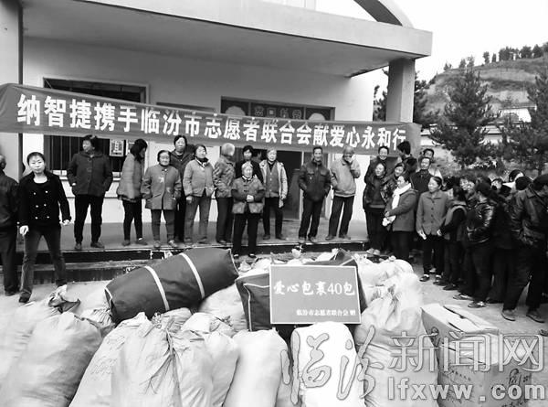 11月13日,记者随爱心车队来到了永和县坡头乡岔口村。在此次爱心活动中,临汾市志愿者联合会为该村村民捐献爱心包裹40包,共计2000余件衣物,适合0岁到60岁人群。临汾纳智捷汽车生活馆还为活动提供了运输车辆。该联合会负责人时利军介绍说:我们开展爱心捐赠活动已经有四个年头了,是通过临汾市市民们的捐赠获得的一些衣物和生活用品及学习用品等物资。联合会的志愿者们现有3000余人,他们的共同心愿就是让更多需要帮助的人能够得到更多的关爱。