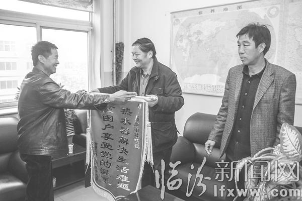 临汾新闻网讯 “特别感谢市扶贫办牵线,让我们村的贫困户装上了太阳能热水器。”11月17日,吉县东城乡东城村的党支部书记和村委会主任将一面写有“热水器解决生活难题贫困户享受党的温暖”的锦旗送到了市扶贫办领导的手里。他们代表村里54户安装上太阳能热水器的村民以表谢意。据了解,安装太阳能热水器是市扶贫办“扶贫热浴工程”的项目之一。 记者 郝海军 摄