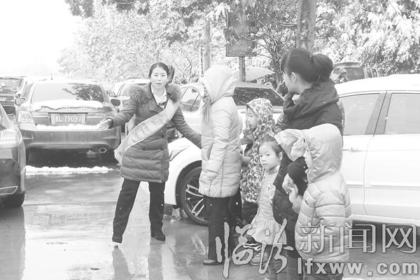 临汾新闻网讯11月24日,一场大雪为我市带来几分寒意,大大集团临汾市公司的志愿者们冒着严寒,来到临汾市第一小学门口与交警一同疏导交通,帮助放学的小朋友们安全过马路。 “下过雪后路面湿滑,交通压力增大,为了小朋友们能安全过马路,我们组织了这次义务活动。”该公司志愿者告诉记者。 记者 田志华 摄