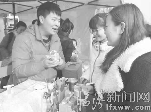 临汾新闻网讯 11月27日,记者在山西师范大学校园内看到,该校物理与信息工程学院的几名志愿者正在开展爱心义卖活动。