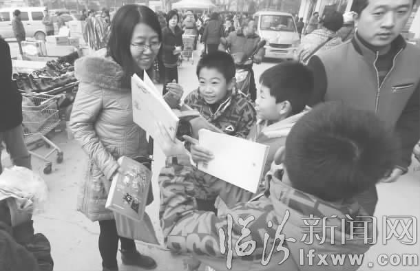 在市区工贸十字口,第一次参加爱心义卖活动的杨志懿显得有些紧张,拿着早已准备好的两本书迟迟不敢走向路人。“男子汉,要勇敢一些,为了需要帮助的孩子,加油!”老师的鼓励犹如强心针,顿时让这个11岁的男孩充满了能量,他勇敢地走向过往的人群:阿姨,买一本书吧,献出一份爱心,帮助那些贫困的孩子。”