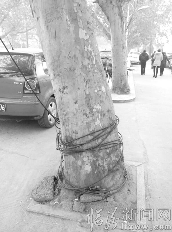 临汾新闻网讯12月1日,市民王女士向本报反映,解放路三中巷外有一根黑色线缆缠绕在路边一棵大树根上,不知道是什么线,有没有带电?是否存在危险? 王女士说:这不但影响了城市形象,也给过往行人带来不安全因素,所以希望相关部门尽快将这条线缆处理好。”记者 田志华