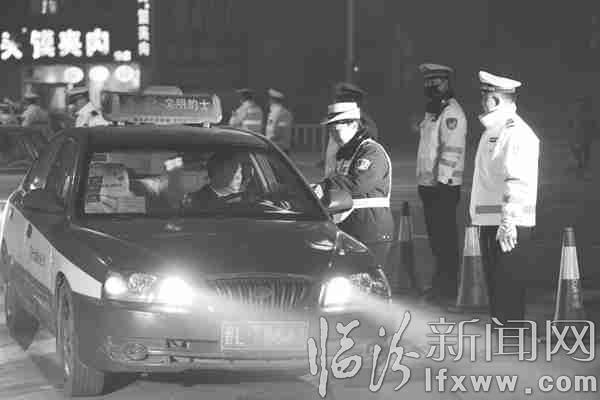 临汾新闻网讯 12月23日21时,临汾市交警支队北城大队二中队的交警在郭家庄岗,开展集中整治交通违法行动,严查酒后驾驶、无证驾驶等严重交通违法行为,为市民营造一个安全、良好的出行环境。 记者 张蕴强 摄