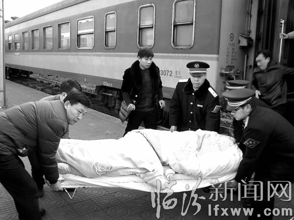 临汾新闻网讯 日前,太原客运段K604/3次旅客列车通过优质的服务,用“诚心、真心、爱心、精心”延伸服务旅客“最后一公里”,受到广大旅客的称赞。图为工作人员帮助重点旅客下车。