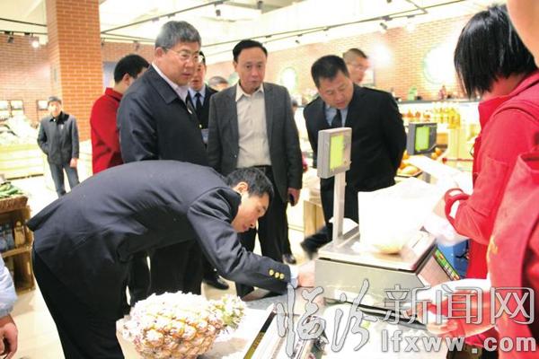 在一处肉类冷冻柜台,一排排待售的生肉完成包装并标明了价格、重量等信息。王晓华向超市人员进行了了解并询问说:“有没有提供一台复秤?没有?那么有消费者对定量包装的计量提出异议怎么解决?”他要求说,一定要严格规范商户计量,防止计量作弊造成缺斤短两,要将广大群众的利益放在心头,诚信经营、诚信兴业。