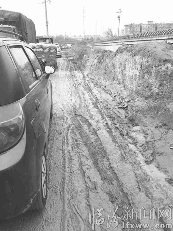 市民孔先生称,这条路一直未硬化,本来就不是很好走,自今年鼓楼南北街道路开始施工后,途经尧丰菜市场和周边小区的车辆,都要从这里绕行,因此造成了该路面晴天是土,雨天是泥的现状。”