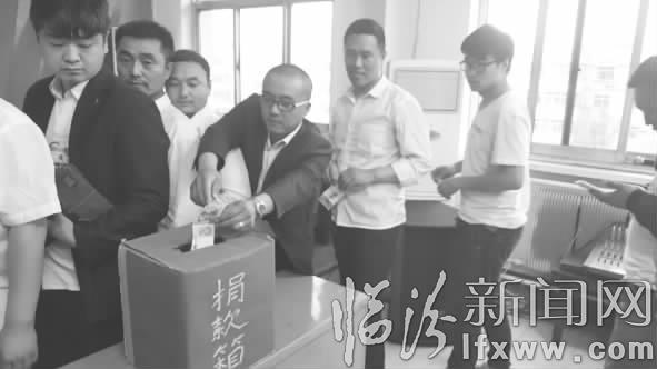 4月22日下午,运鑫出租车公司的会议室内聚集了很多司机,大家纷纷为李向涛捐款。的哥韩师傅告诉记者,一听说有爱心捐款活动,他立刻回到公司,虽然捐的钱不多,但是自己的一份心意。