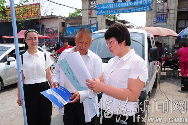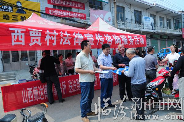 5月22日,西贾村逢集日,山西师达律师事务所的律师在集市上开展法律咨询,发放普法书籍,村民周长安一大早就来这里,期盼律师能帮他解决难题。