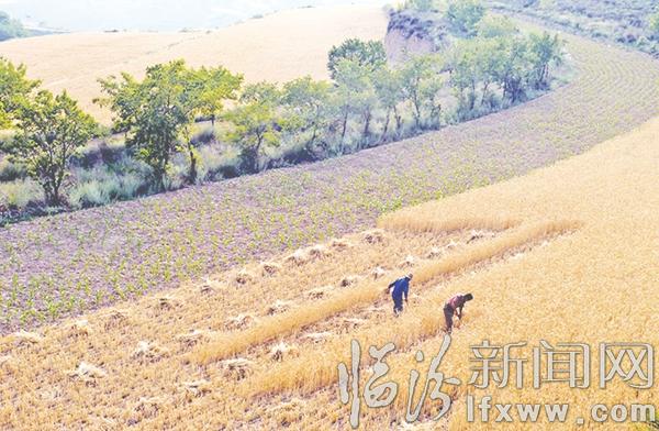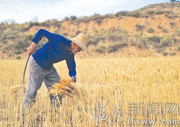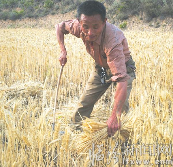临汾新闻网讯 6月13日,朋友告知,在霍山脚下的霍州师庄乡一带有村民手工收割麦子。多少年没有看见手工收麦的场景了,一听到这个消息,记者立即赶往霍州。