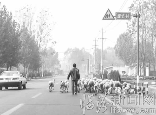 临汾新闻网讯 11月2日中午,尧都区金殿镇席坊村G309国道上,有一村民正赶着一群羊行走,当时,正有车辆路过,受惊的羊群在马路上飞跑,险象环生。 记者 张蕴强 摄