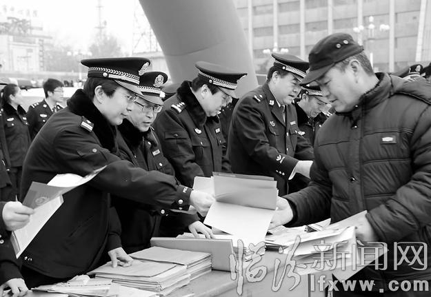 临汾新闻网讯 1月10日,在市区平阳广场,民警正在为市民发放安全知识宣传单。当日,市公安局在开展平安临汾“110”主题宣传日活动,让广大市民进一步了解公安日常管理工作,创建和谐的警民关系。