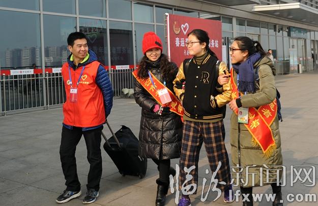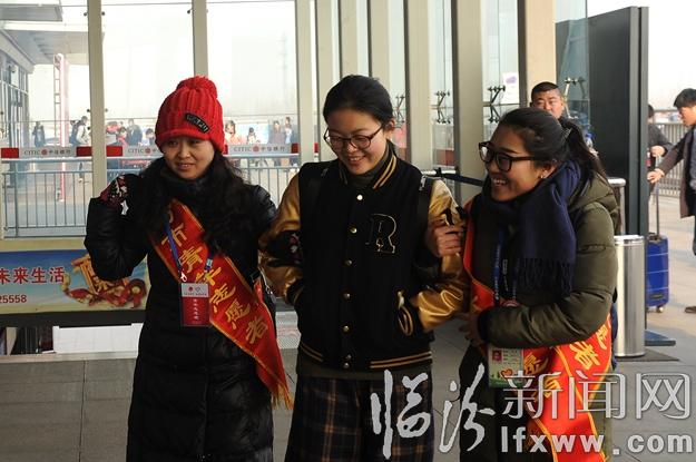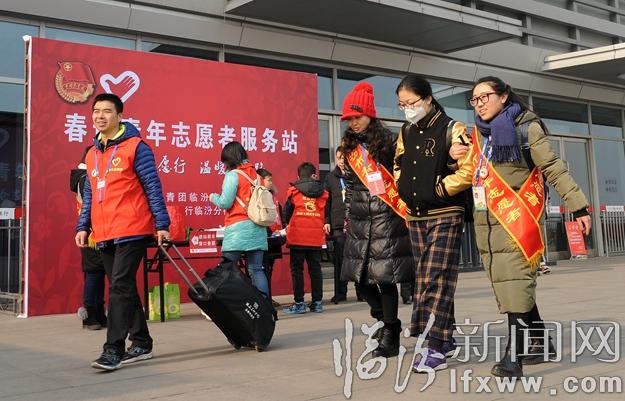 临汾新闻网讯 1月18日,在临汾西站,临汾春运青年志愿者在帮助一名乘客前往候车室。在临汾工作的陕西籍董婷女士因不慎扭伤了左脚,回西安老家出行造成很大困难,临汾市春运青年志愿者服务队闻讯后,成立3人爱心帮扶小分队,取票、搬运行李、进站、候车、乘车进行了贴心的志愿服务,以认真务实的态度让寒冬里的回家路有了浓浓的暖意。