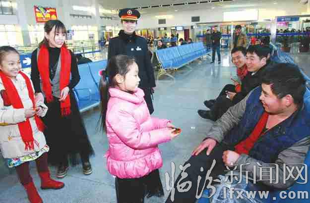 临汾新闻网讯 “叔叔,祝您旅行愉快!这个平安手环送给您。”1月20日,临汾西站迎来了一群特殊的小学生,他们在候车厅内为旅客跳了“快闪”,并送给候车的旅客每人一个代表平安的手环,祝旅客旅途愉快。
