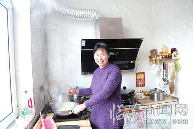 村民逯振红正在厨房为家人准备午饭。她说:住到楼房做饭,不用生火,干净、方便。”