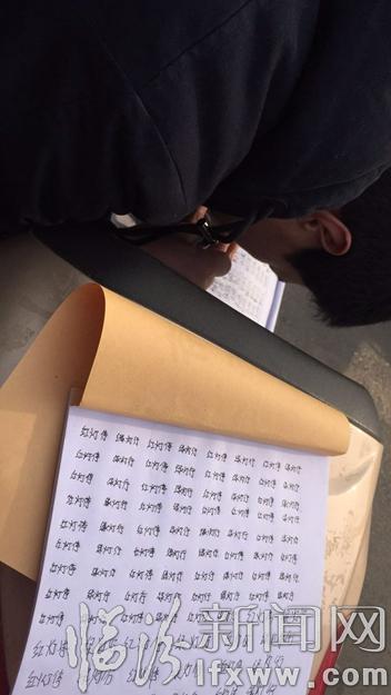 临汾新闻网讯 2月15日上午10时许,平阳南街与五一路十字路口交通顺畅、秩序井然。在十字路口的东北角聚集了七、八辆电动车和摩托车,有几个人趴在车座上写着什么,一位交警和另外几个人交谈着,他们在干什么?记者走上前去,一探究竟。