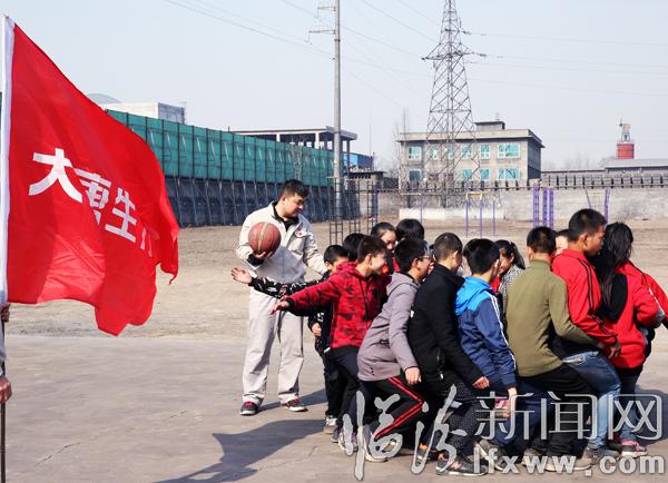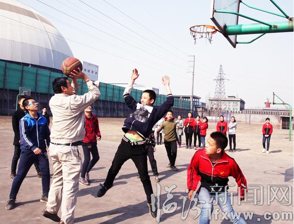 大唐临电公司的志愿者和“大唐班”的孩子们一起打篮球比赛,培养大家的团队协作意识。