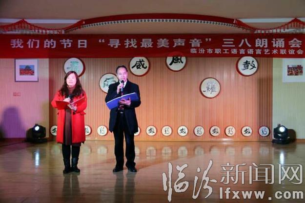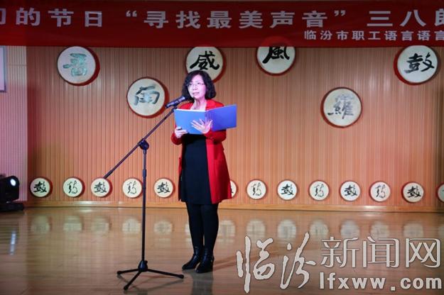 临汾新闻网讯(记者 卫博)3月8日晚,临汾市职工语言艺术联谊会在群艺馆举办了<<我们的节日——寻找最美声音“三八”朗诵会>>,在活动现场,朗诵爱好者们既有经典小说的演绎,又有国学诗词的豪放,既有原创现代诗文的曼妙,也有名曲老歌的雄浑。时而铿锵嘹亮,时而柔和舒缓,时而跌宕起伏,时而缠绵悱恻,热烈的气氛一浪高过一浪。