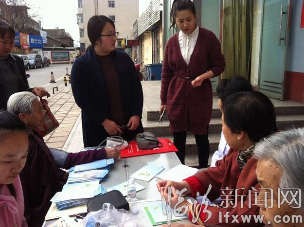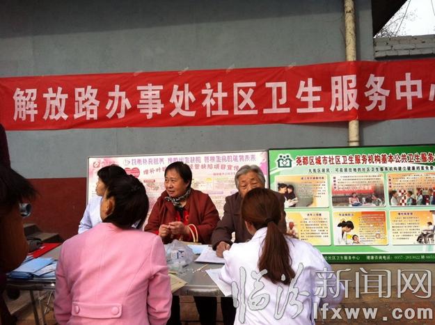 临汾新闻网讯(记者 郭霞) 3月9日,尧都区解放路办事处社区卫生服务中心工作人员和医务工作者,在市府社区为居民免费体检,建立健康档案,宣传免费服务项目及服务内容。