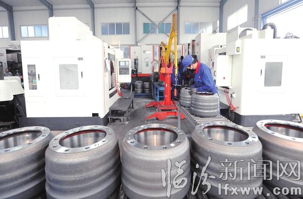 该公司投资6.4亿元建设双金属复合一体式制动鼓项目。目前项目一期两条生产线已投产,2017年计划再新建6条生产线。图为工人们正在新的生产线上工作。