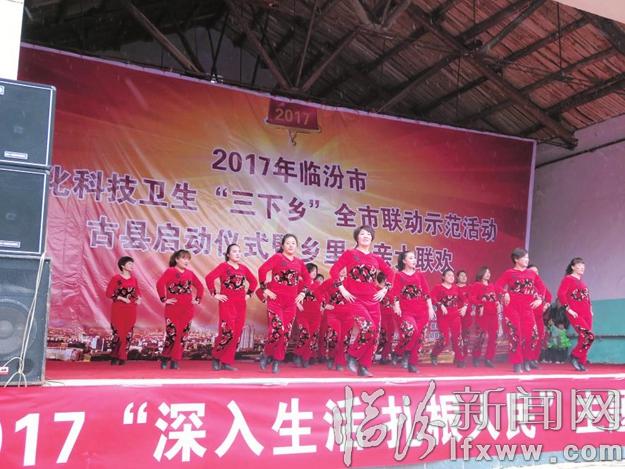 古县县委宣传部、文化局、教科局、卫计局、农委等13家成员单位联合在旧县镇旧县村开展下乡活动,为农民群众送文艺演出、送农业技术、送健康知识、送法律援助,同时送来价值15万元的款物。活动现场,人头攒动,来自农业、科技、教育等方面的专家学者和志愿者冒雨为群众进行健康、文化、科技、农业种植等知识的宣传和义诊活动,现场接受群众咨询500余人次,为群众发放了各类书籍3000余册、宣传材料1万余份,村民秦元智说:“今年的‘三下乡’活动是规模最大、效果最好的一次。”仪式之后举行的古县品牌文化活动——乡里乡亲大联欢演出,为老百姓送上了一份精美的文化大餐。