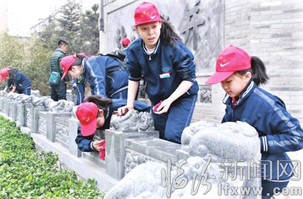临汾新闻网讯 近日,临汾光明中学部分师生、家长一起来到鼓楼南北街清扫沿街垃圾,擦洗大理石坐椅、雕塑、公共卫生间,同时带队老师一路为大家讲解了雕塑文化,鼓励学生用实际行动为“母亲街”添彩。