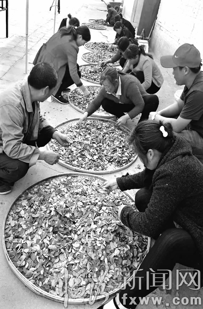 临汾新闻网讯 安泽、古县天然野生连翘生长达400余万亩,产量占全国的三分之一。随着连翘叶茶保健功能研究的深入和开发力度的加强,连翘叶茶的市场需求日趋旺盛,内销和出口逐年递增,市场前景广阔。图为临汾市裕丰特新农业开发有限公司“太岳裕翘”连翘茶古县生产加工基地,于5月14日组织当地农民分级筛选原料。