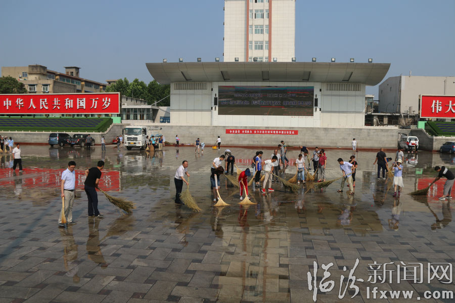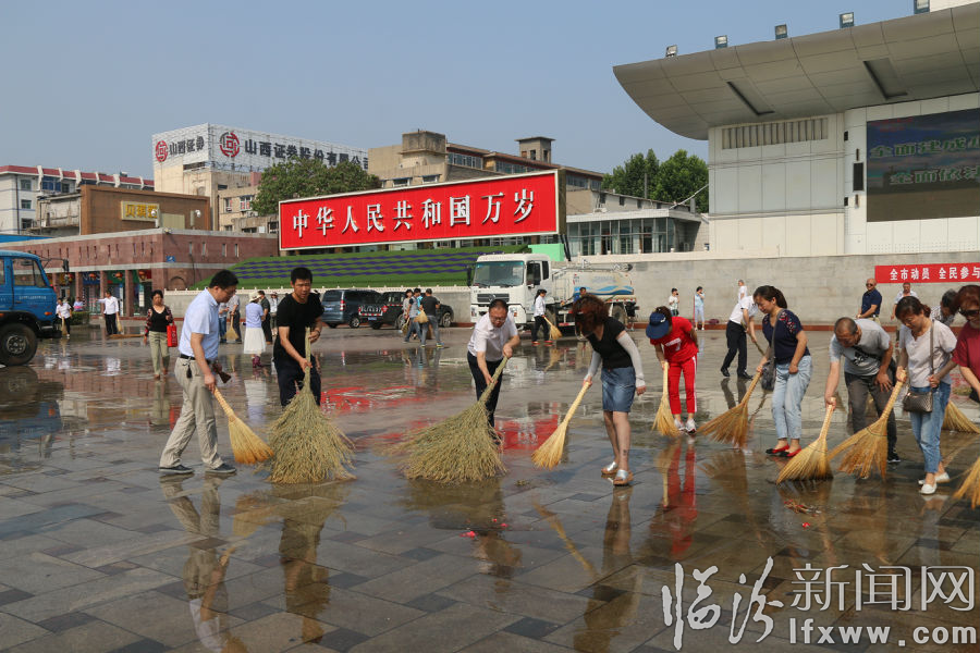 临汾新闻网讯 为加强市区市政公用设施管理,配合我市环境集中整治活动开展,在党的96岁生日来临之际,29日上午,市政公用局百名党员冒着酷暑,拿起扫把、清洁球等工具,分成五个小组对平阳东西广场内的通道、花池、地面上的杂物、纸屑、垃圾等进行彻底清理,经过2个多小时奋战,广场面貌焕然一新,得到广大市民纷纷称赞。