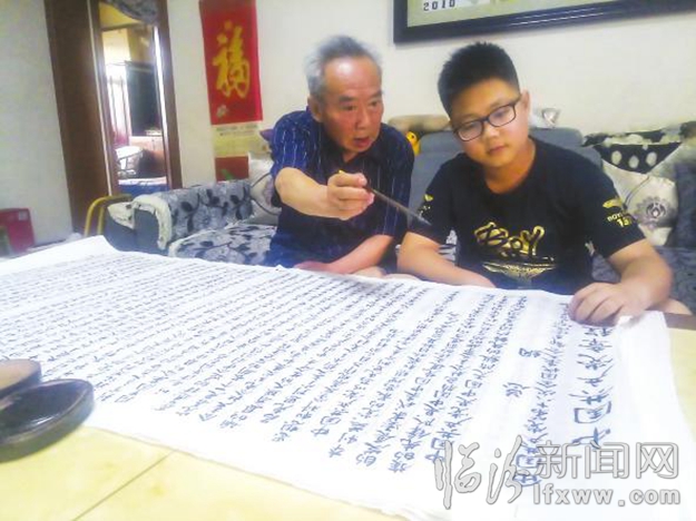 “心似平原走马易放难收,学如逆水行舟不进则退。这句话我用毛笔写好交给孙子小昊,希望他以后努力工作,为建设国家贡献力量。”高德宏说。