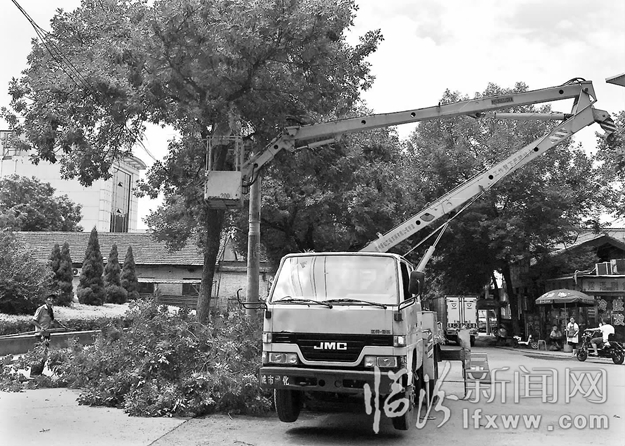 临汾新闻网讯 7月19日,在市区兵站路,市城市绿化大队的工作人员在修剪人行道上的绿化带。连日来,该大队针对夏季雷雨天气增多的情况,对辖区道路的行道树进行了修剪,排除安全隐患。