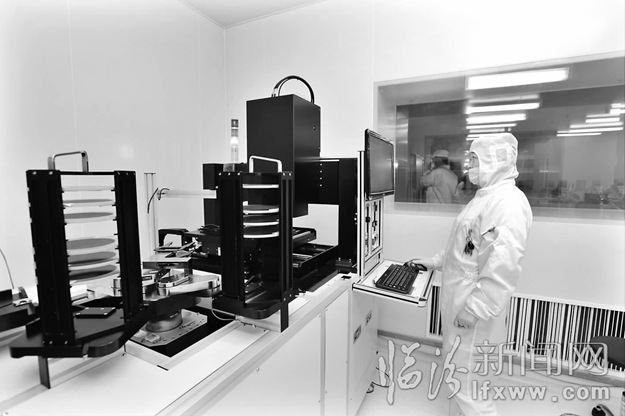 临汾新闻网讯 山西飞虹微纳米光电科技有限公司是以研发、生产和销售大功率高亮度LED外延片及芯片的高新技术企业。该企业依托多所高等院校技术平台,集结了数十位专家和博士组成技术团队从事研发生产,产品很好满足了国内客户的需求。图为工作人员正在加工LED外延片。